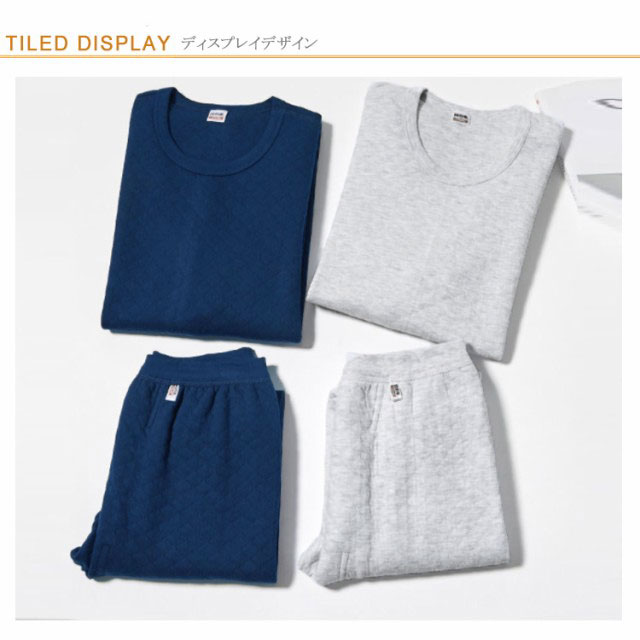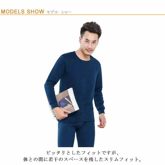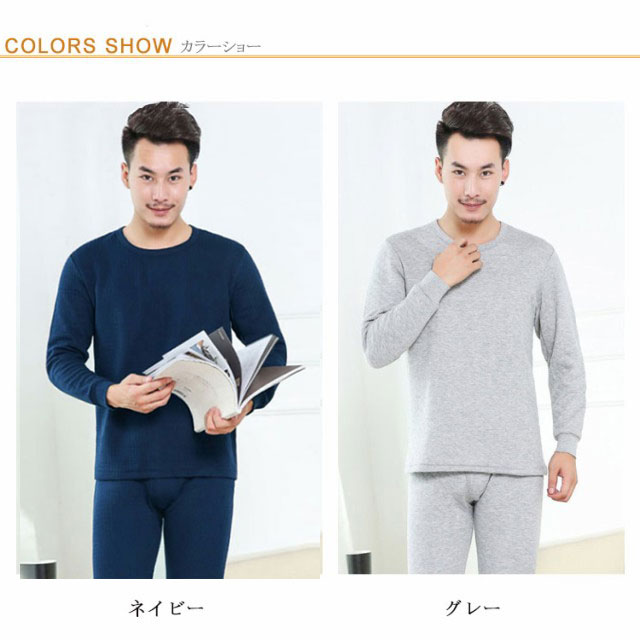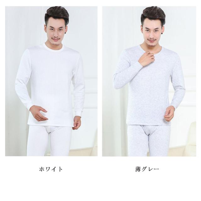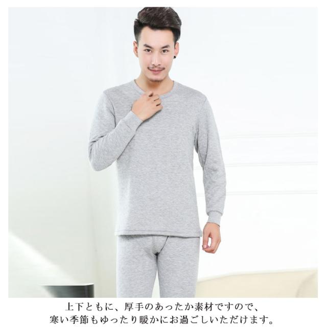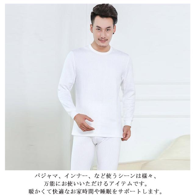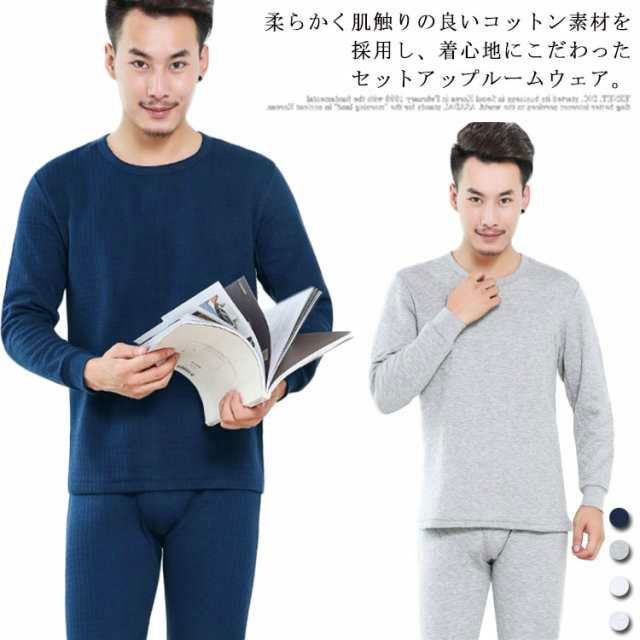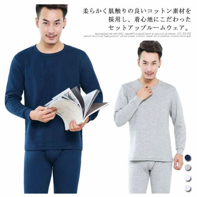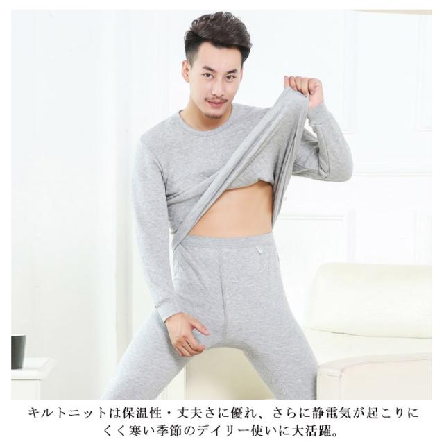 【送料無料】メンズ ヒートテック 上下セット 肌着 キルト 100%綿 ロンt やや厚手 長袖 インナーシャツ ストレッチ アンダーシャツ 保温 防寒 ラウンドネック 春 秋冬 発熱 グレー ネイビー 紺 白 大きいサイズ M-4L