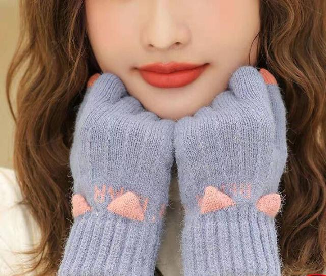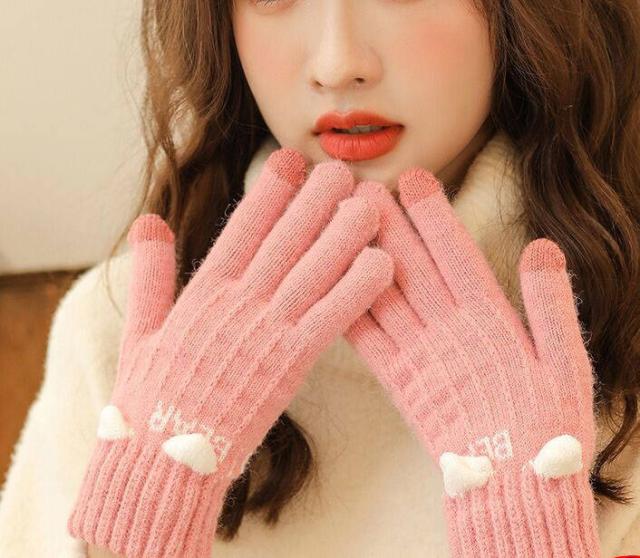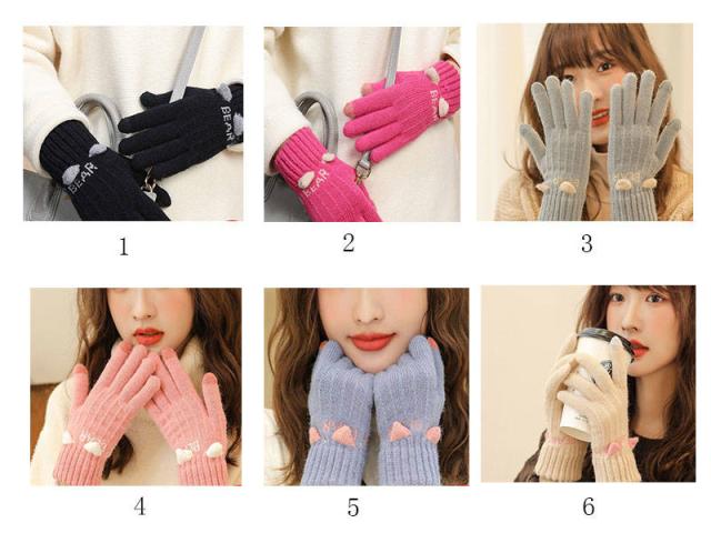 手袋 手ぶくろ グローブ レディース スマホ対応 スマホ手袋 送料無料 五本指 防寒 暖かい ニット 猫耳 ネコミミ 自転車 女性用 通勤 通学 タッチパネル 冬 裏起毛 防風 保温 サイクリング タッチタネル対応