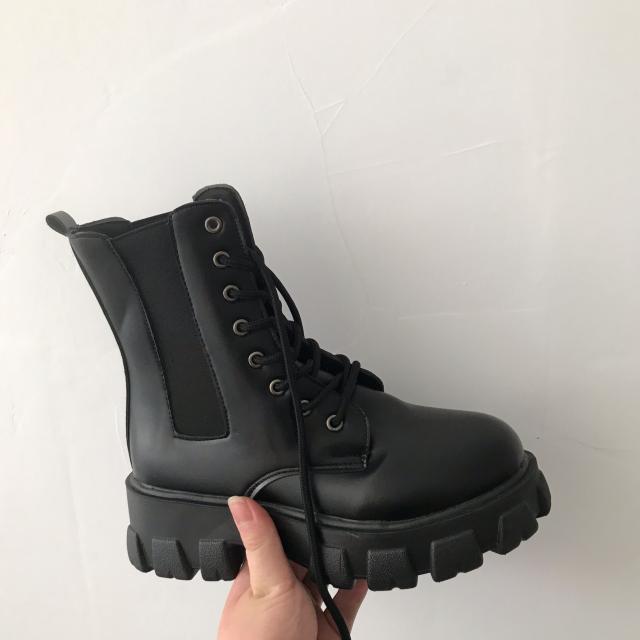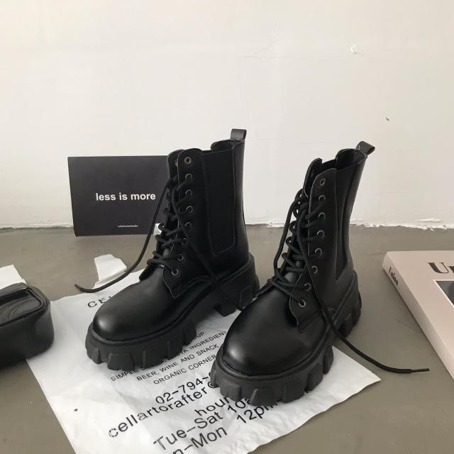 厚底マーティンブーツ 女性 冬 軽量 レースアップブーツ マーチンブーツ 防水 プラスベルベット ショートブーツ レディース 大きいサイズ アンクル ブーツ ブラック