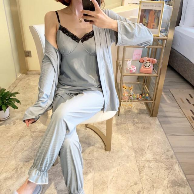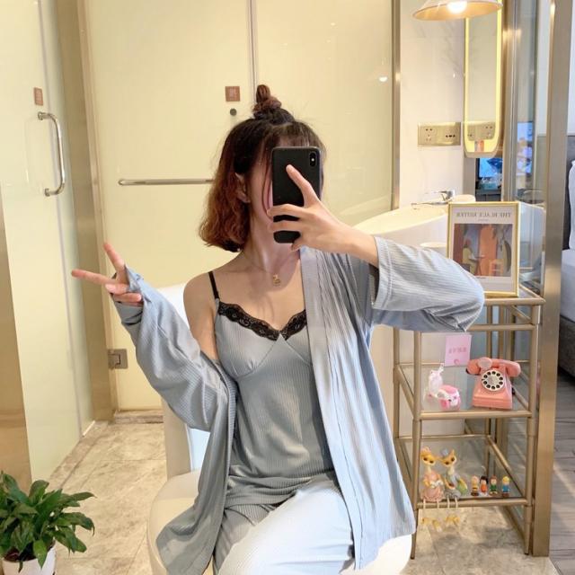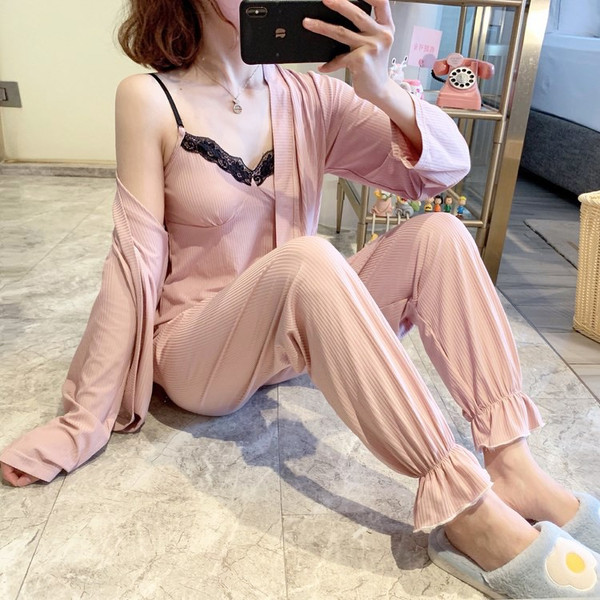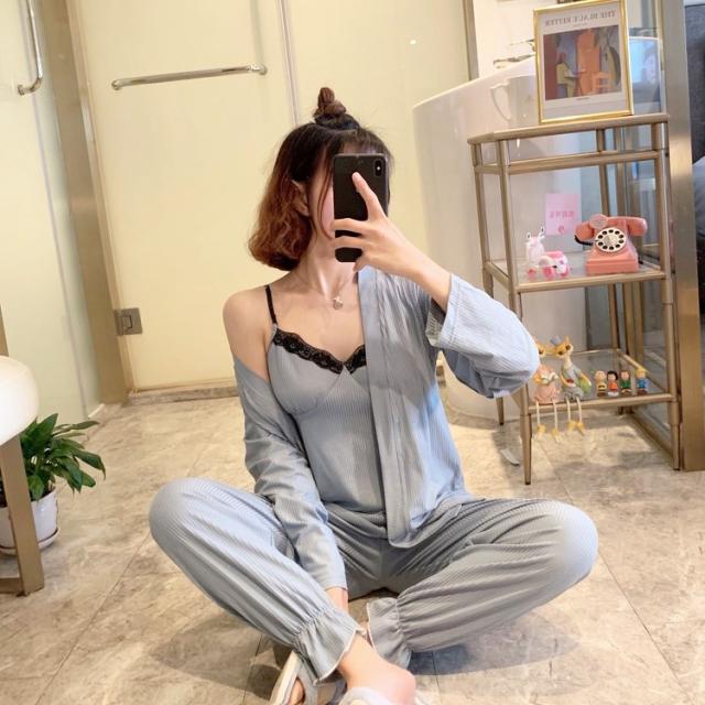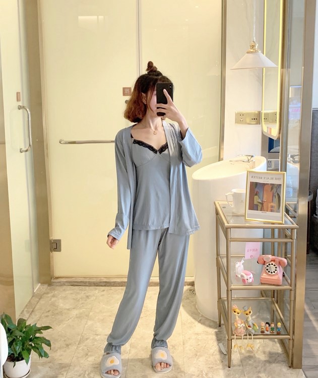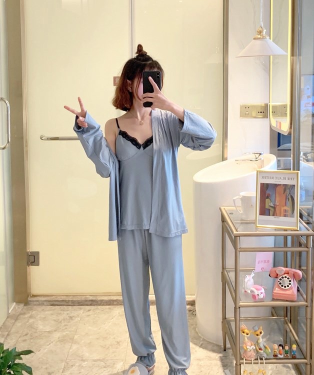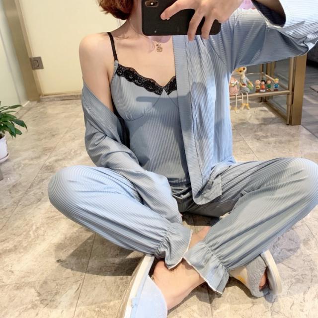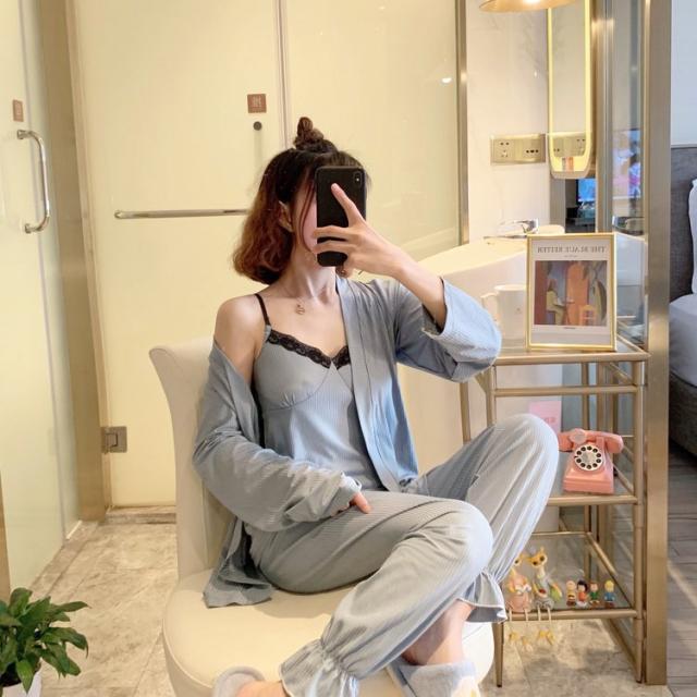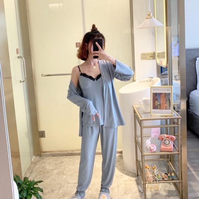3点パジャマ ルームウェア レディース 春夏秋 前開きパジャマ 長袖 ロングズボン レースVネック 可愛いルームウェア 薄手レション 部屋着 ランジェリー