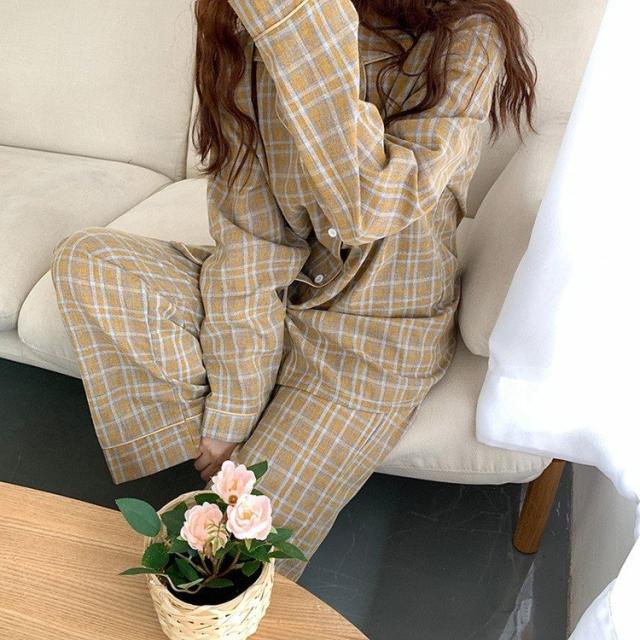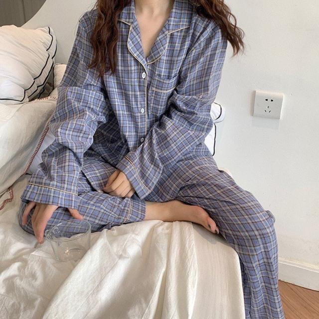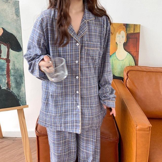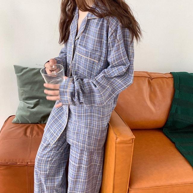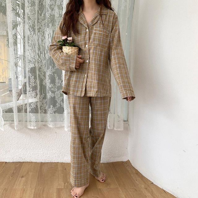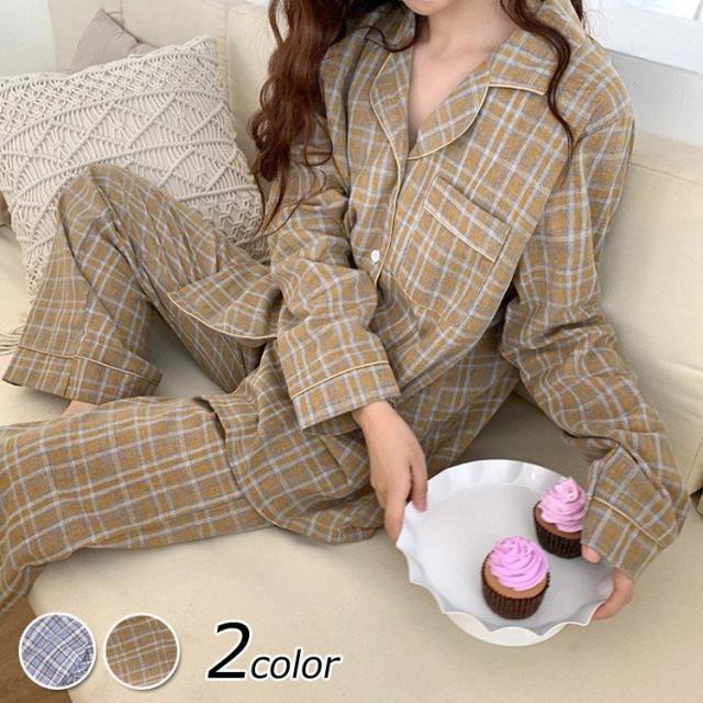 パジャマ ルームウェア レディース 春秋 長袖パジャマ 綿チェック柄 上下セット パジャマ ルームウェア カップル ペアルック部屋着 寝巻き ルームウェア 可愛い