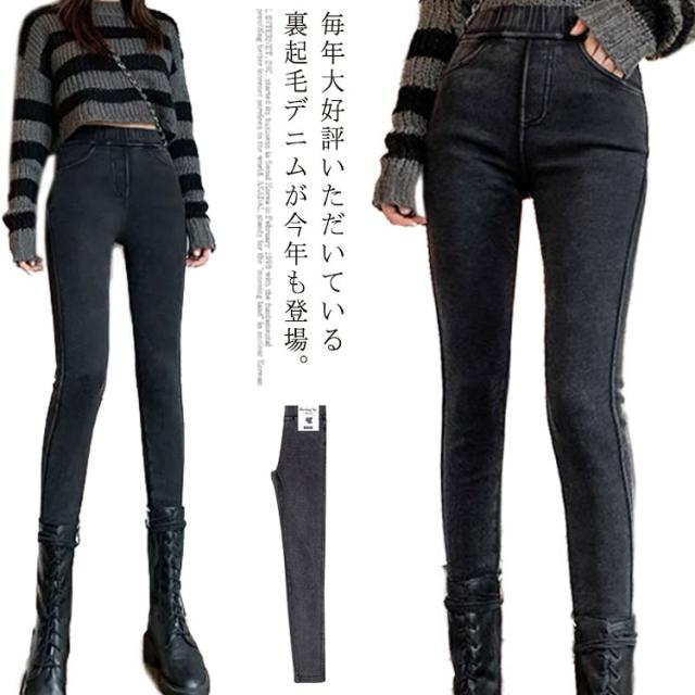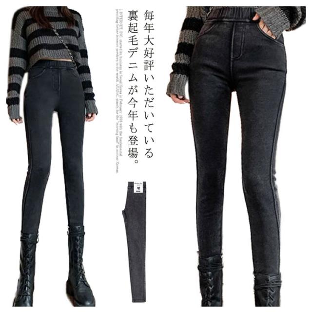 スキニーパンツ レディース 裏起毛と薄手2タイプ ストレッチ ウエストゴム スキニー デニム パンツ ハイウエスト ロング丈 春 夏 秋 冬 シンプル 大人 おしゃれ 黒 グレー 大きいサイズ S-6L 八分丈 九分丈