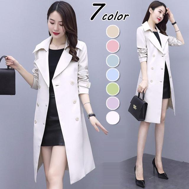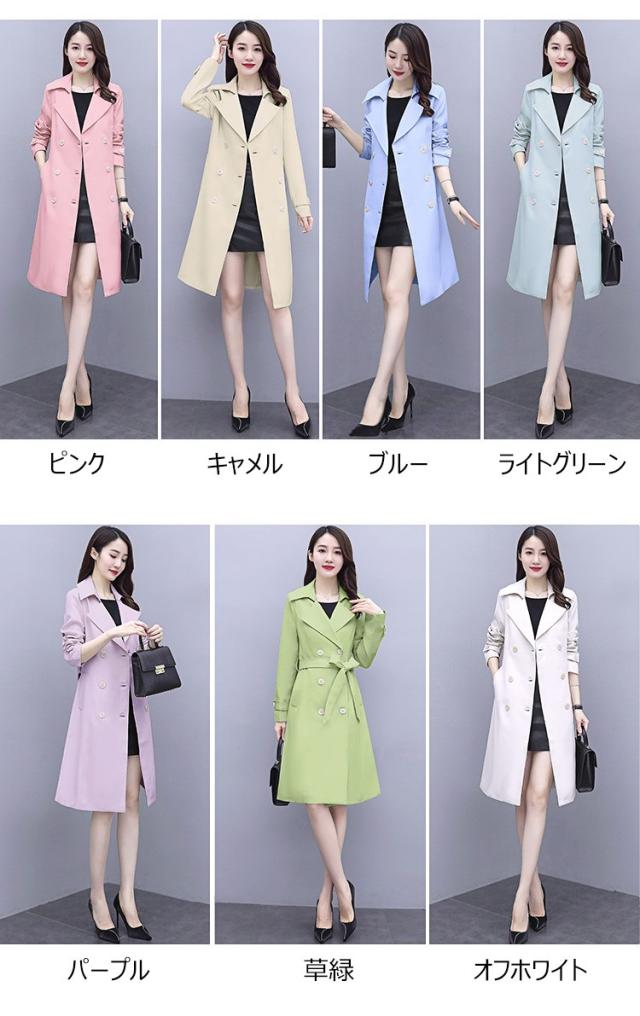 トレンチコート レディース 40代 ロング丈 スプリングコート 春コート ダブルボタン ライトアウター 秋服 韓国風 ベルト付きオーバー 30代 50代 大きいサイズ