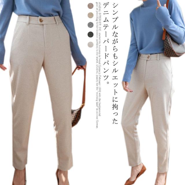 【送料無料】テーパード パンツ レディース カーブパンツ ボトムス 厚手 ロング丈 ゆったり スリム 細身 しっかり ストレート 通勤 オフィス 大人 大きいサイズ 春 秋 冬 体型カバー ベージュ 茶色 黒 ブラック おしゃれ
