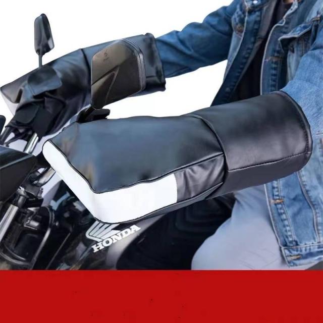 バイク ハンドルカバー ハンドルウォーマー バイクハンドルカバー 送料無料 防水 防寒 反射ストラップ付き PUレザー ブラック 冬 暖かい 裏起毛 汎用 スクーター 大型 アップハンドル ミニバイク 対応 ミトンタイプ 暖かい 寒さ対策 オートバイ 防風