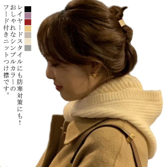 つけ襟 付け襟 レディース ニット フード付き 無地 パーカー襟 付け衿 防寒 暖かい フェイクカラー パーカー襟 白 黒 グレー つけ衿 重ね着 レイヤード つけ衿 つけえり