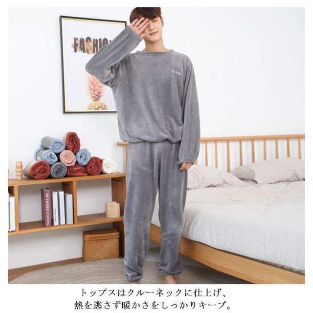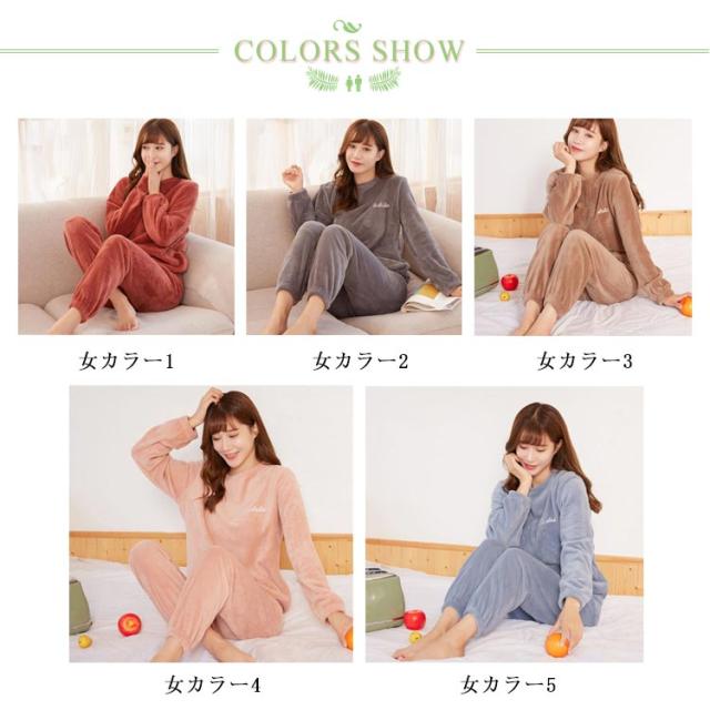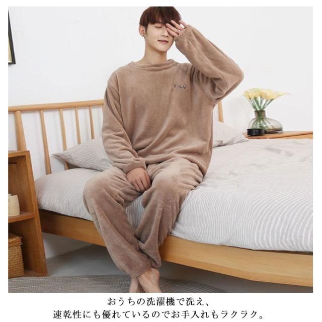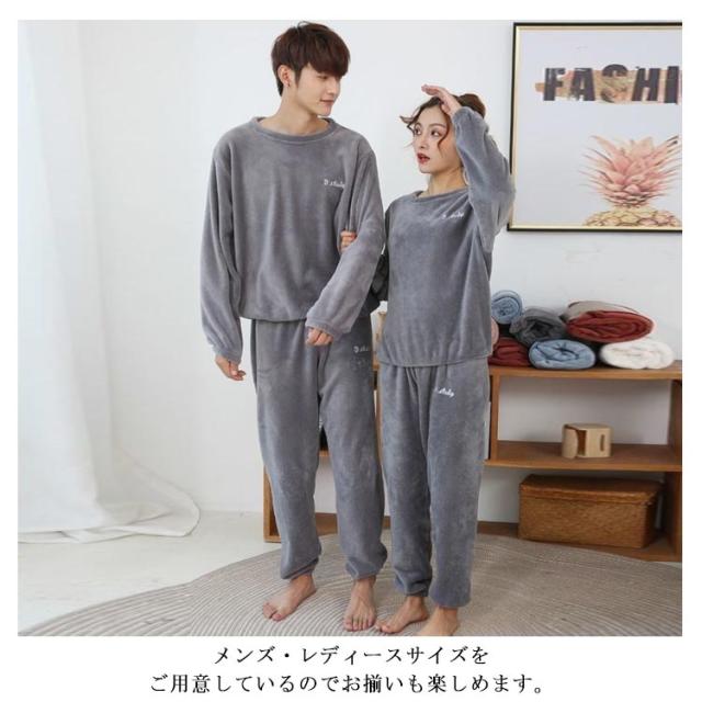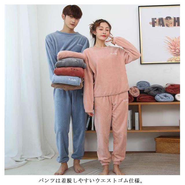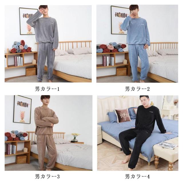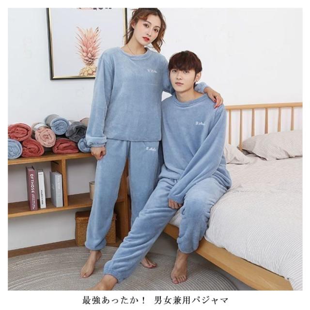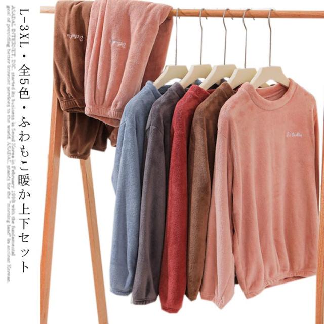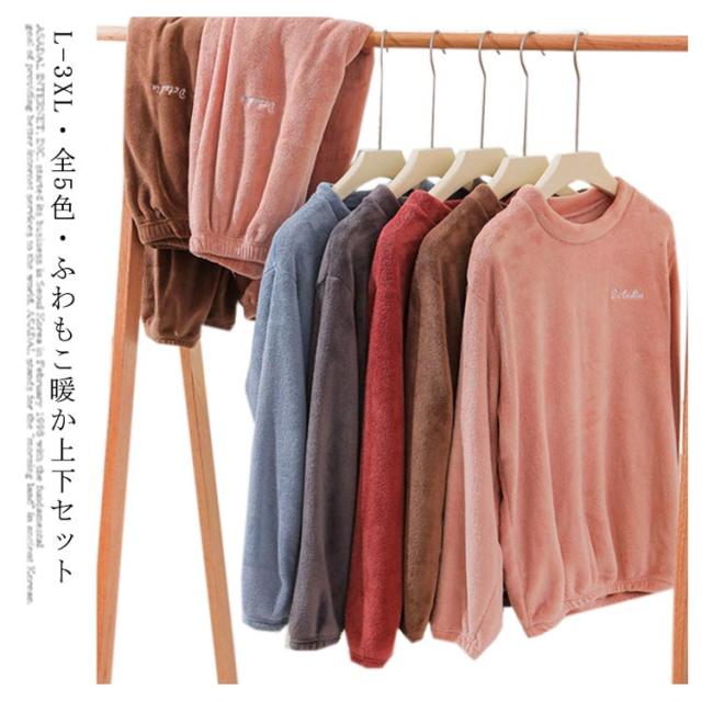 ふわもこ暖か素材! パジャマ メンズ レディース 秋冬 ルームウェア 冬 長袖 もこもこ 無地 2点セット 寝巻き 部屋着 パンツ メンズパジャマ 裏起毛 長ズボン 中厚 レディースパジャマ 大きいサイズ ナイトウェア あったか 韓国 男女兼用 ふわもこ