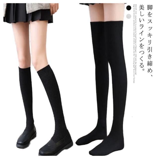 [美脚2足セット] ニーハイソックス レディース ハイソックス 靴下 着圧 ソックス 秋冬 厚手 防寒 無地 着圧ソックス ニーハイ 着圧ハイソックス 美脚 着圧靴下 白 黒 暖かい 保温 オーバーニー オーバーニーソックス ニーソ ブラック ホワイト