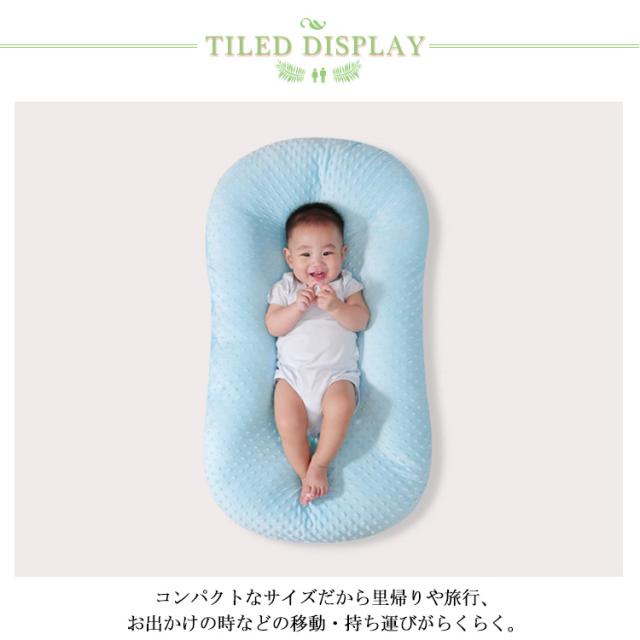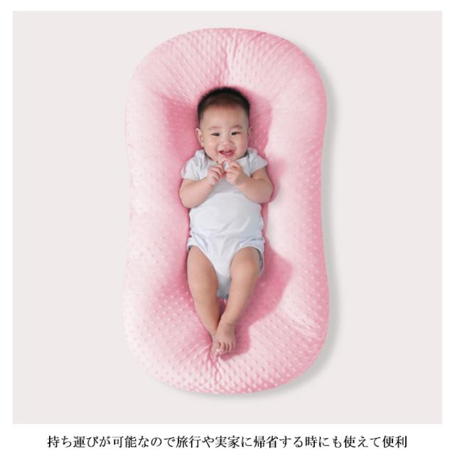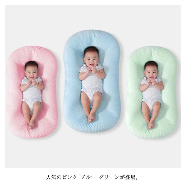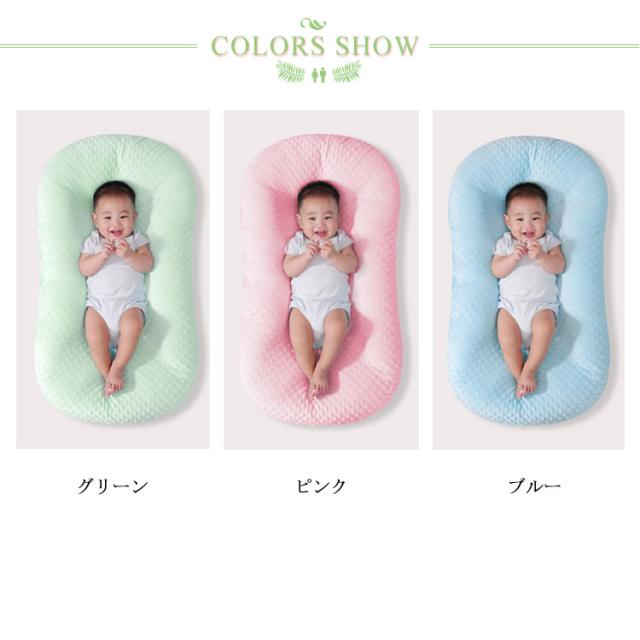 | 取り出し可能・持ち運び便利・丸洗える! クッションのようなベビーベッド! 人気のピンク ブルー グリーンが登場。 コンパクトなサイズだから里帰りや旅行、お出かけの時などの移動・持ち運びがらくらく。 添い寝用のベッドインベッドとしても使用可能。 赤ちゃんの寝かしつけもスムーズに。腹ばいの練習にもぴったりです。 取り出し洗濯できるから清潔にお使いいただけます。 360°保護してくれるベッドインベッド! コットン生地のまわりがあるので、赤ちゃんが眠りに落ちると心配する必要がありません。 持ち運びが可能なので旅行や実家に帰省する時にも使えて便利 家のどこでも寝かしつけてき、家事をしながらでも赤ちゃんの様子を見ることができます。 軽いので持ち運びに便利。お出かけや旅行等で、赤ちゃんの寝床に早変わり。 | |