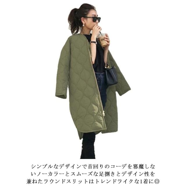 キルティングコート ロングコート ノーカラー 黒 ミリタリージャケット レディース ジップアップ ジャケット ゆったり アウター 秋冬 中綿ジャケット 防寒 暖かい 秋 冬 羽織り ミリタリー カジュアル シンプル おしゃれ