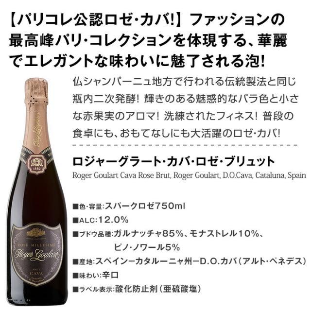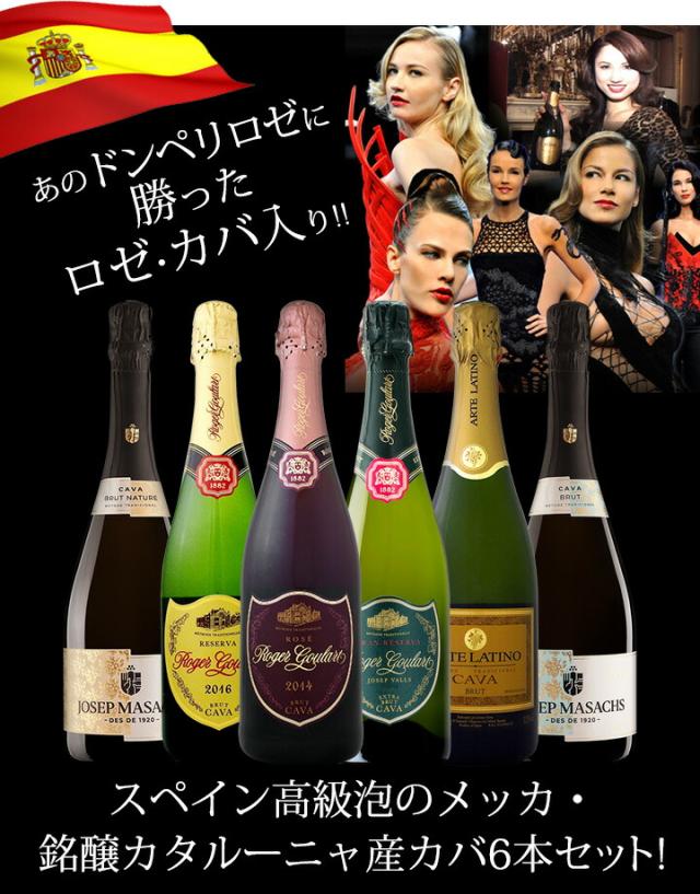 すべて伝統製法・瓶内二次発酵カバの銘醸地、カタルーニャ産ばかり6本セット!!あのパリコレ公認スパークリングにしてドンペリ・ロゼに勝った大人気ロジャーグラートのロゼ・カバ!!その上級の長期熟成グランレセルバと金色ラベルのブリュット、世界中で大人気極辛口ブリュット・ナチュレも!!さらに当店大ヒットロングセラーのアルテラティーノまで入った本格派辛口スパークリング6本!!泡好きにはたまらないお買い得セット!!まとめ買いにたっぷりご利用ください!!