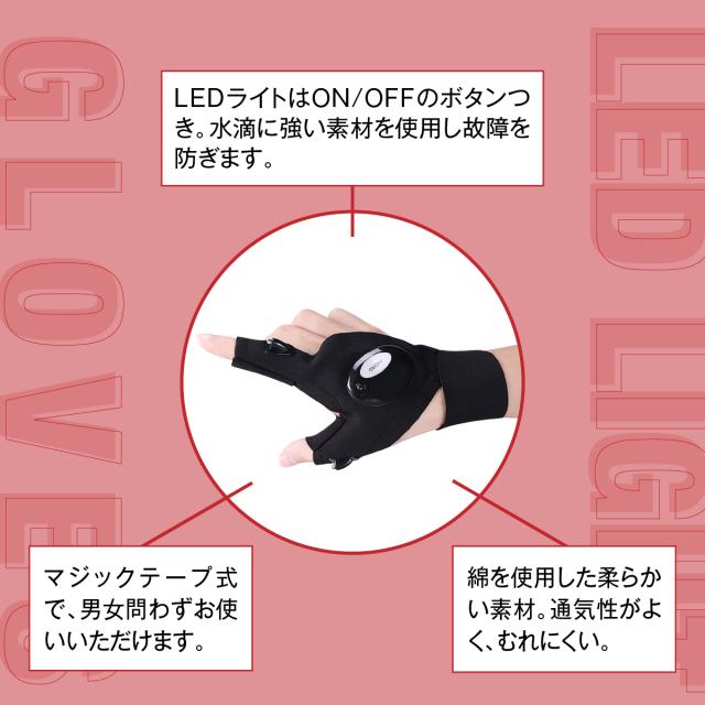 LED ライト付き グローブ 両手セット ナイトフィッシング アウトドア 懐中電灯 釣り 夜釣り 手袋 フィッシング led-grove