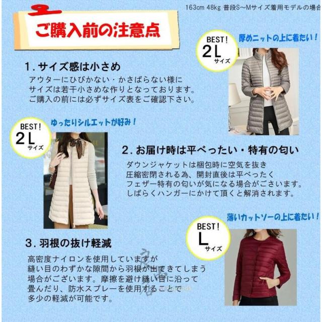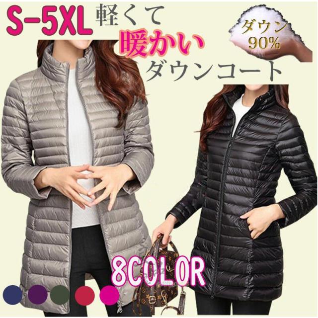 ダウンコート レディース ロング ダウンジャケット 軽い 薄いライト M L LL 3L 4L 大きいサイズ 軽量 重ね着 無地