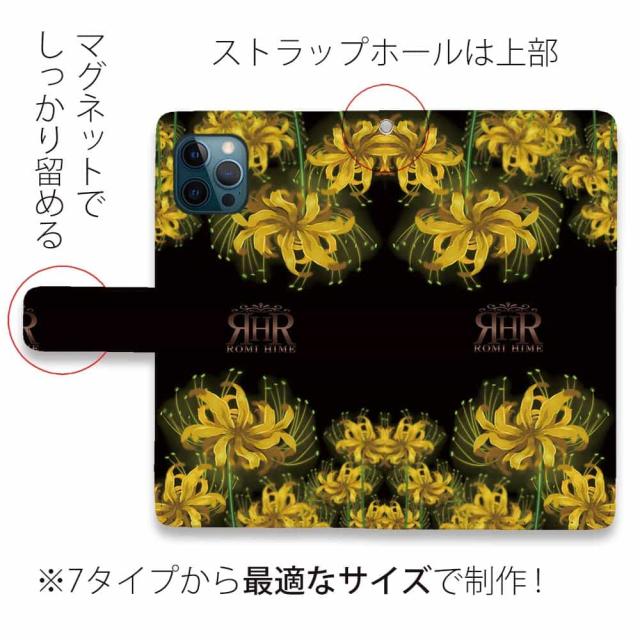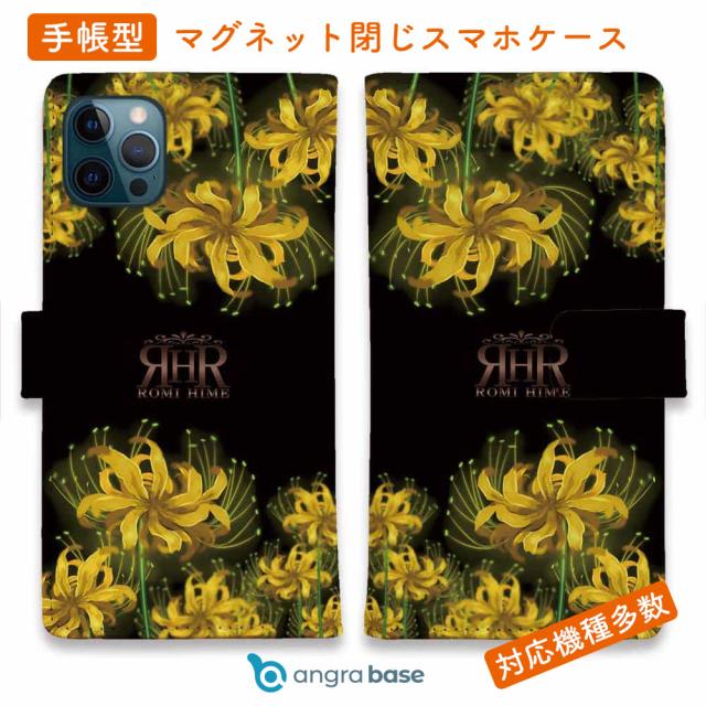 スマホケース 手帳型 カード収納 マグネット iPhone17 Pro Max iPhone Air iPhone16e iPhone16 Pro Max 16 Plus 15 Pro Max Xperia 10 VII Galaxy AQUOS ARROWS Pixel10 XL ROMI HIME 彼岸花 イエロー