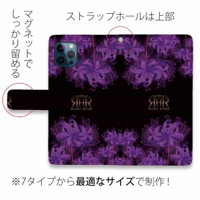 スマホケース 手帳型 カード収納 マグネット iPhone17 Pro Max iPhone Air iPhone16e iPhone16 Pro Max 16 Plus 15 Pro Max Xperia 10 VII Galaxy AQUOS ARROWS Pixel10 XL ROMI HIME 彼岸花 パープル