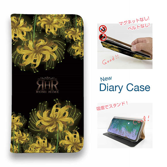 スマホケース 手帳型 ベルトなし iPhone17 Pro Max iPhone Air iPhone16e Pro Max 16 Plus 15 Pro Max 14 Plus Xperia 10 VII Galaxy AQUOS Pixel10 Pro XL ROMI HIME 彼岸花 イエロー
