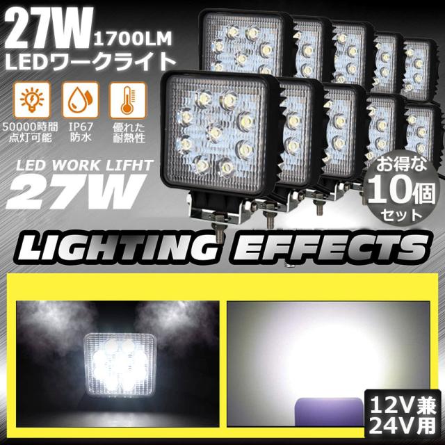 27W LED作業灯 10点セット ワークライト デッキライト LED投光器 27w 12v 24v 兼用 防水 防塵 防震 取付け自由 省エネルギー コンボビーム 集光 投光両立 各種作業車に対応 前照灯