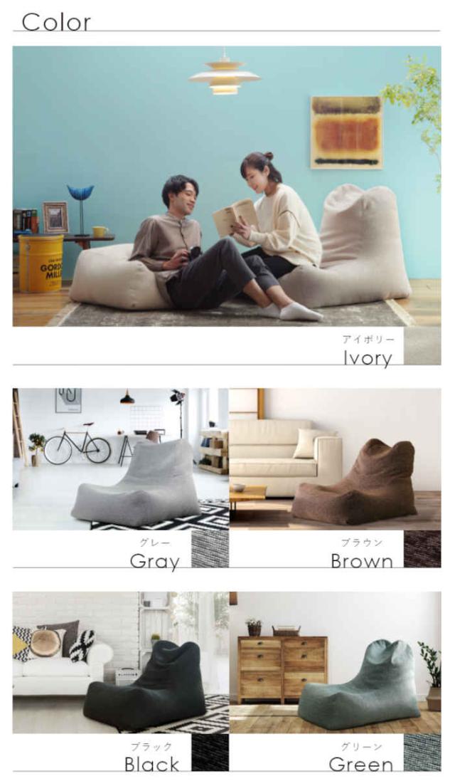 ビーズソファセット「ファビオ」。カラーバリエーションは、ブラウン(JAN:4589443461518/型番:71500038vabr)、アイボリー(JAN:4589443461525/型番:71500038vaiv)、ブラック(JAN:4589443461532/型番:71500038vabk)、グレー(JAN:4589443461549/型番:71500038vagr)、グリーン(JAN:4589443461556/型番:71500038vagrn)です。底付き感がなく、自然と体にフィット。どこにでも置ける。ロータイプソファなのでコタツにもピッタリ。お部屋に馴染みやすいカラー。移動が簡単なので、お掃除もラクラク。