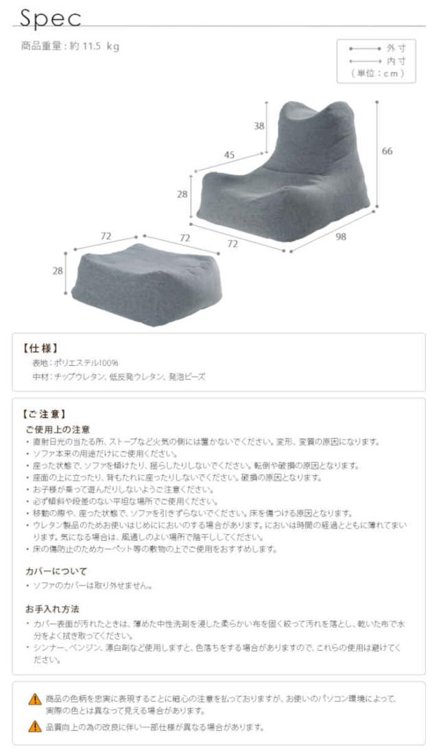 ■素材等:表地:ポリエステル100%、中材:チップウレタン、低反発ウレタン、発泡ビーズ