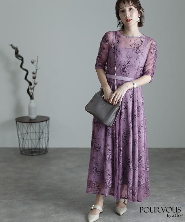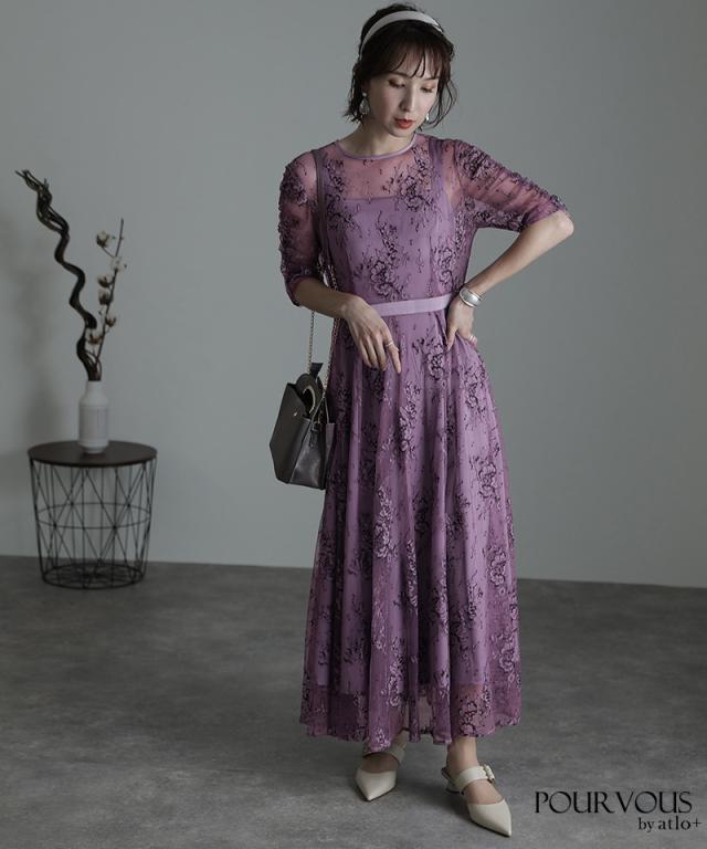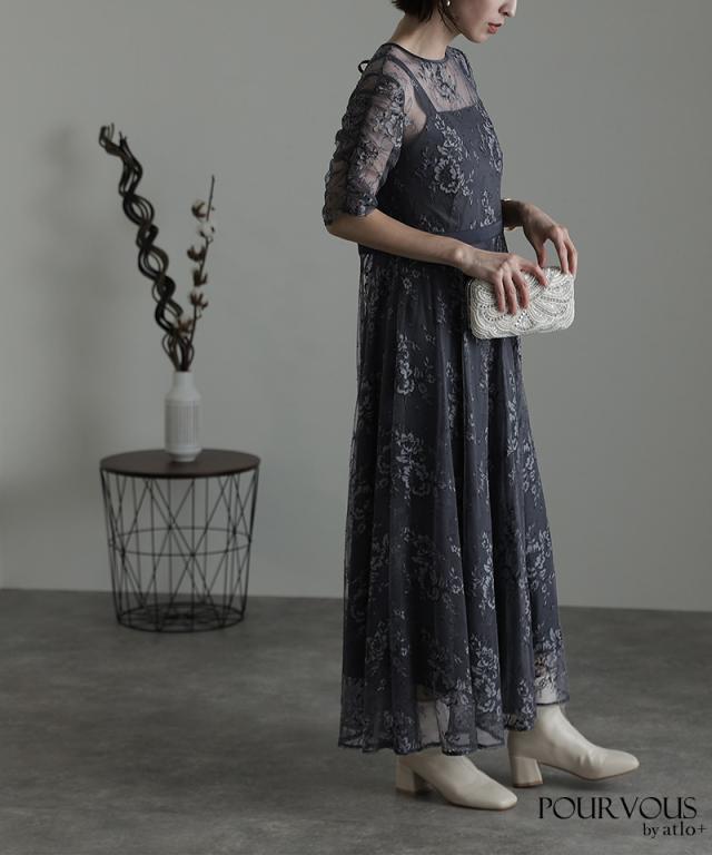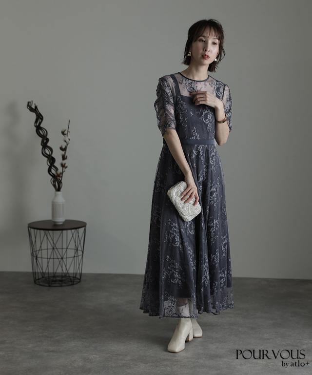 852212138 パーティードレス 結婚式 ワンピース フォーマルドレス ドレス お呼ばれ 小柄 大きいサイズ 20代 30代 40代 春 夏 秋 冬 二次会 体型カバー aライン 50代 袖あり 小さいサイズ 韓国 低身長 150cm お呼ばれ 上品 フォーマル 総レース atlo 長袖 上品 ロング丈 七分