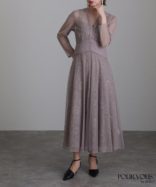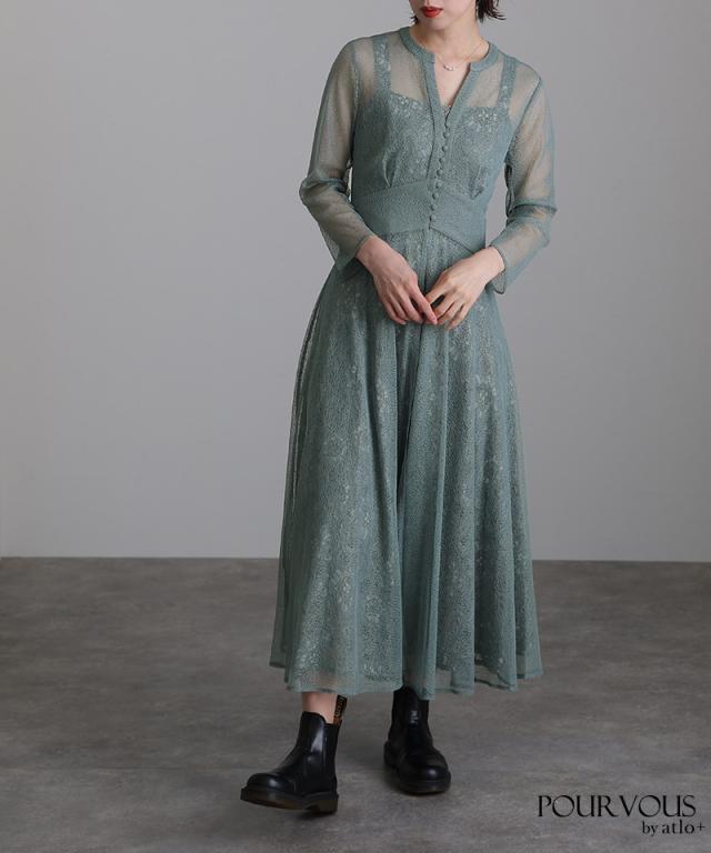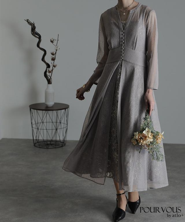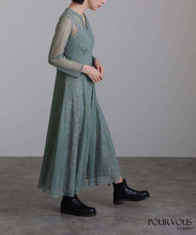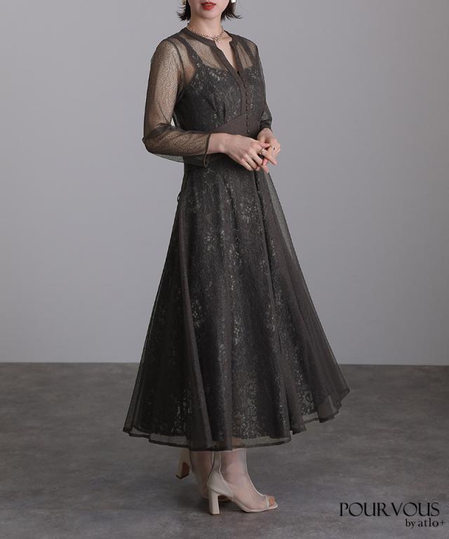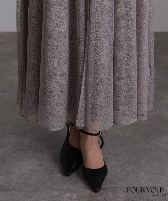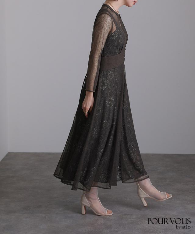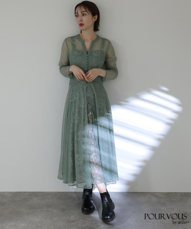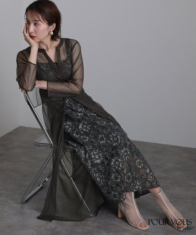■体型カバーポイント【二の腕】【脚】【ウエスト】【ヒップ】長袖とロング丈のスカートが気になる箇所をカバー。上品な透け感があるため、軽やかな雰囲気に。