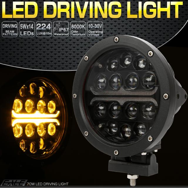 LED 作業灯 フォグライト 70W スポット Hi Lo アンバーマーカーライト付き ブラックインナー 12V 24V 防水 P-560