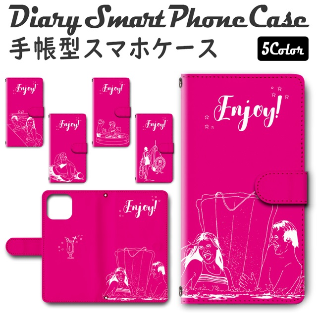 スマホケース スマホ ケース スマホカバー スマホ カバー 手帳型 iPhone13ProMAX (6.7inch) 対応 送料無料 Enjoy 夏 サマー 海 プール マゼンタ ピンク / dc-326