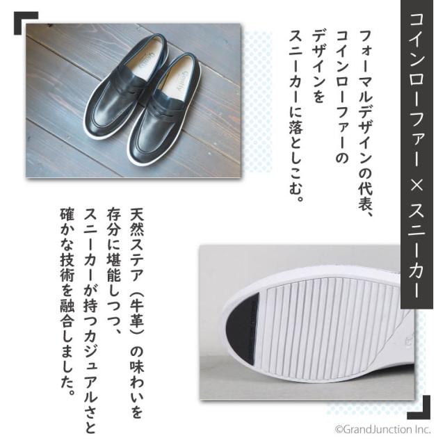 老舗靴メーカー「ムーンスター」社製の注目シューズです。デザインはコインローファーのコートスニーカータイプ。 30年以上の歴史がある日本初のウォーキングシューズブランドWORLD MARCHの技術力を引き継ぎ、履く人にも“優しい”履き心地を実現しました。