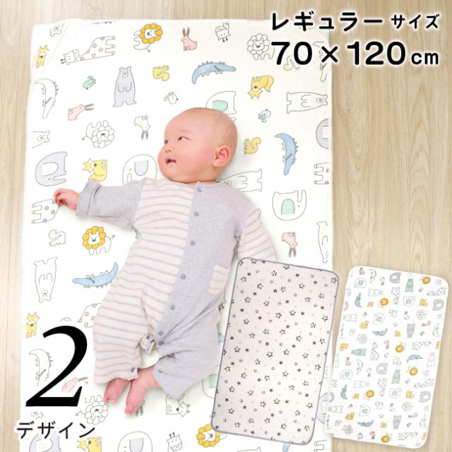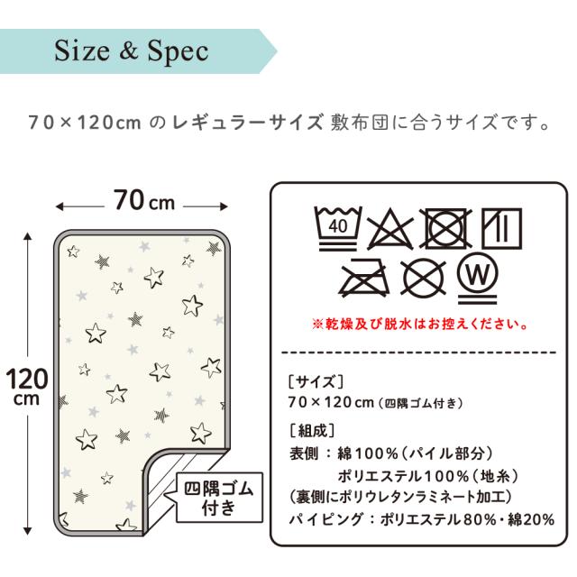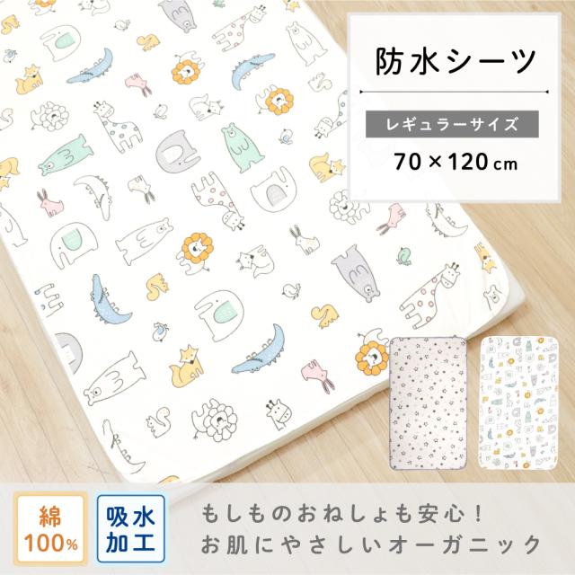 ベビー 防水シーツ 70×120cm レギュラーサイズ ベビー布団用 オーガニックコットン 綿100% パイル 吸水加工 四隅ゴム付 スター 星 北欧アニマル おねしょ対策 赤ちゃん 出産準備 保育園 お昼寝 un doudou メール便発送(ポスト投函) NP
