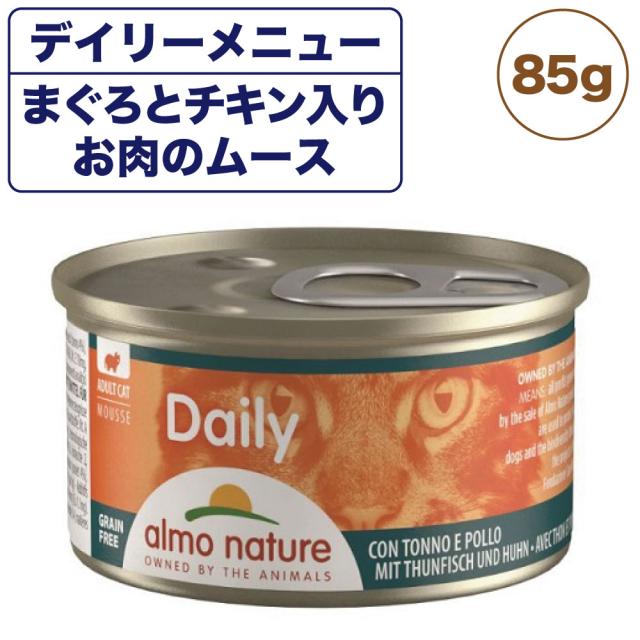 アルモネイチャー デイリー まぐろとチキン入りお肉のムース 85g 猫 キャットフード 猫用 ウェットフード 総合栄養食 缶詰 Almo Nature