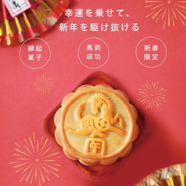 リムテー 干支 午 うま お正月 2026 干支菓子 季節限定【干支月餅 】単品1個 月餅 スイーツ お取り寄せ 手焼き 個包装 手土産 常温 焼き菓子 プチギフト プレゼント 中華街 老舗 中華菓子 年賀 賀正 新年 お配り 新春