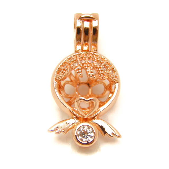 ■商品の内容 かごペンダントトップ オーナメント 8mm玉サイズ 人工石 丸玉用 ピンクゴールド 1個売り アロマペンダント アロマペンダントトップ アロマ ペンダントまるで天使の羽のように、パカッとひらくカゴパーツです。オーナメント型が登場です。人工石がついているからとってもキラキラ。8mm玉サイズまでのビーズが入ります。※玉は別売りです。 ■サイズ サイズ:全長:約24.5mm×約10.5mm、8mm玉用素材:銅