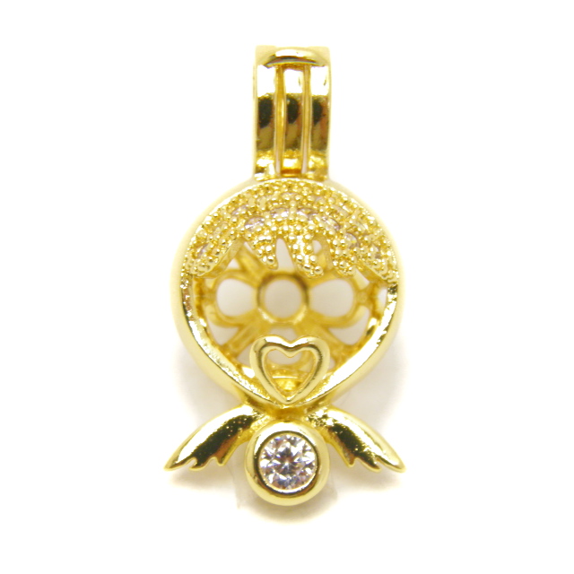 ■商品の内容 かごペンダントトップ オーナメント 8mm玉サイズ 人工石 丸玉用 ゴールド 1個売り アロマペンダント アロマペンダントトップ アロマ ペンダントまるで天使の羽のように、パカッとひらくカゴパーツです。オーナメント型が登場です。人工石がついているからとってもキラキラ。8mm玉サイズまでのビーズが入ります。※玉は別売りです。 ■サイズ サイズ:全長:約24.5mm×約10.5mm、8mm玉用素材:銅