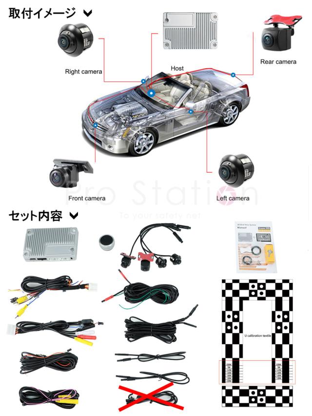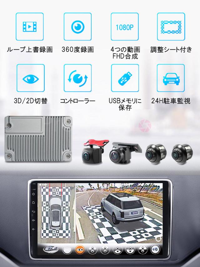 3Dアラウンドビュー ドライブレコーダー 360度鳥瞰パノラマ 全方向3Dバードビューモニターシステム 空中映像 映像調整シート付 3ヶ月保証