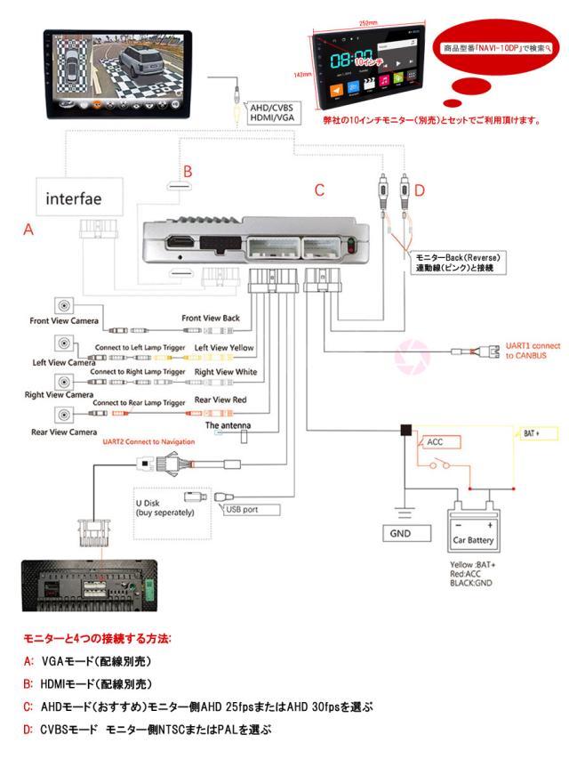 ・純正ナビモニターを使う場合、CANBUSキャンセラーが必要ですので、サポートしておりません。
