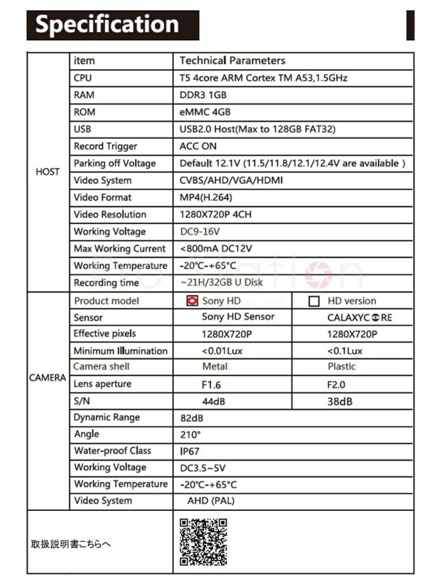 ・取扱説明書x1(電子版日本語説明書は詳細写真にあるQRコードより)