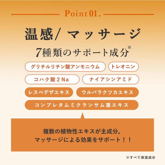 - 温感は強くないと思いますが、使用場所で差を感じます(個人差が出そうです) ベタつかず優しい香りです チューブタイプなのに大容量で驚きました のびは最初は良いですが、長めにマッサージをするには不向きかも...