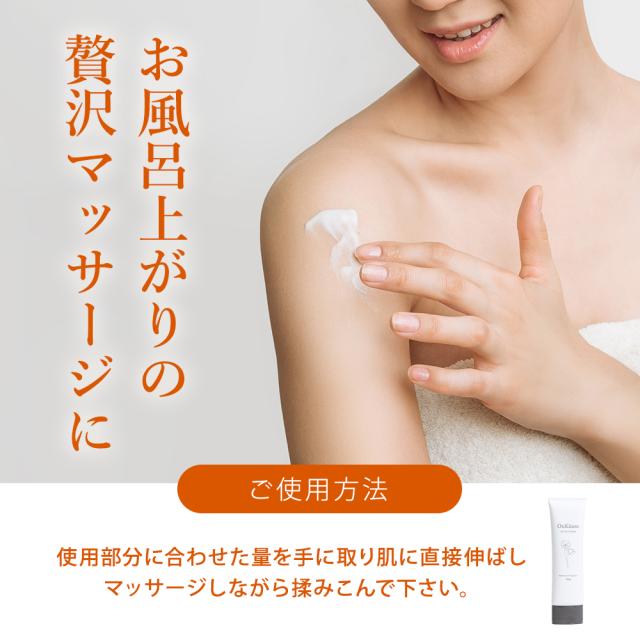【お風呂上がり】に使用部分に合わせて量を手に取り肌に直接伸ばしマッサージしながら揉みこんでください。