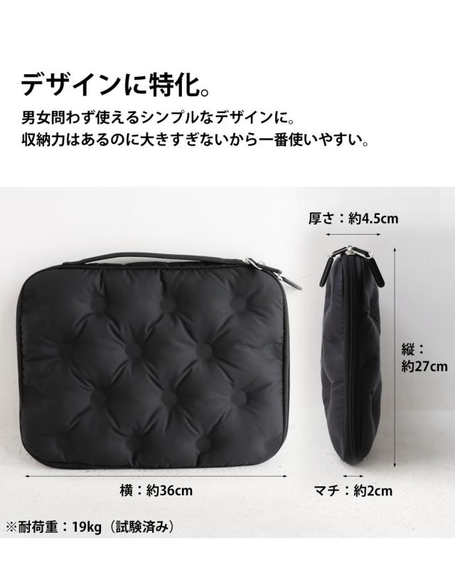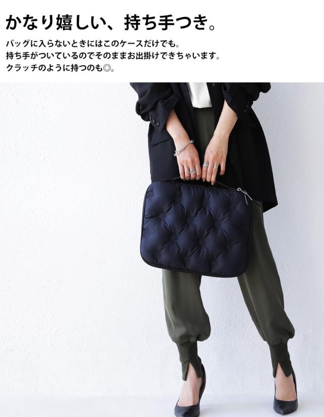 lb-00002 11インチ 13インチ A4 おしゃれ タブレットケース 持ち手付き 軽量 大容量 持ち運び 手提げ PCケース 収納ポケット ボンディング キルティング クッション 黒