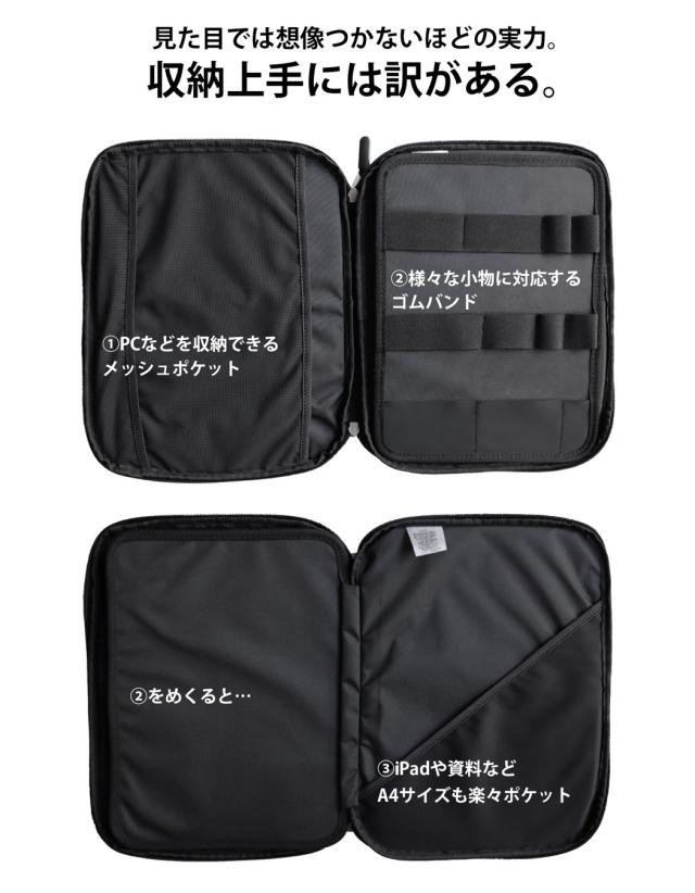 ・iPadや資料などA4サイズも楽々ポケット!!