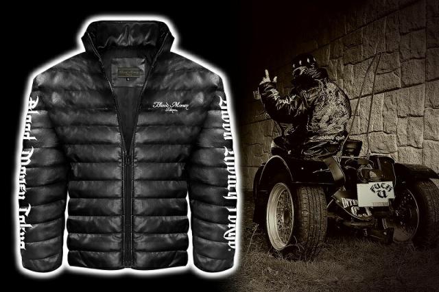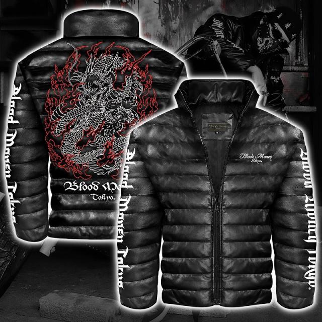 龍柄 レザー調 中綿ジャケット 黒×白 胸刺繍 ヤクザ ヤンキー 悪羅悪羅 オラオラ系 服 BLOOD MONEY TOKYO 21013 派手 和柄 ダウンジャケット並み 防寒 秋冬物 メンズ ファッション 悪党の店 バースジャパン BIRTHJAPAN