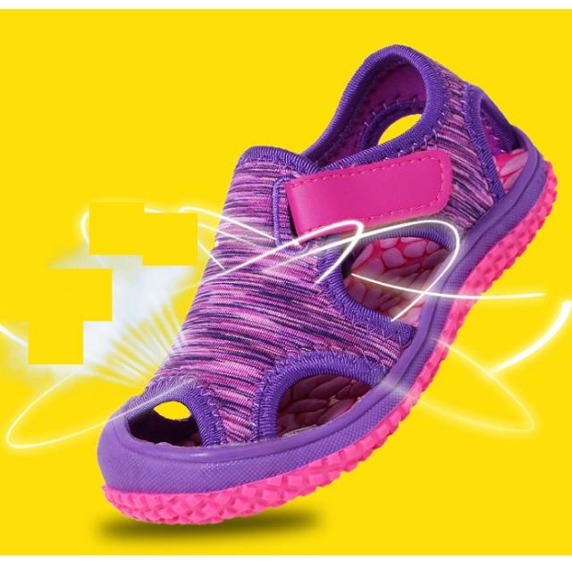 水陸両用 マリンシューズ 送料無料 ウォーターシューズ キッズ 靴 キッズ サンダル ベルクロストラップ マジックテープ サマーシューズ 男の子 女の子 子供靴 水遊び 川遊び プール ビーチ ボーイズ ガールズ 滑り止め 海 砂 夏 紫迷彩 15/16/16.5/17/17.5/18/18.5/19/20cm