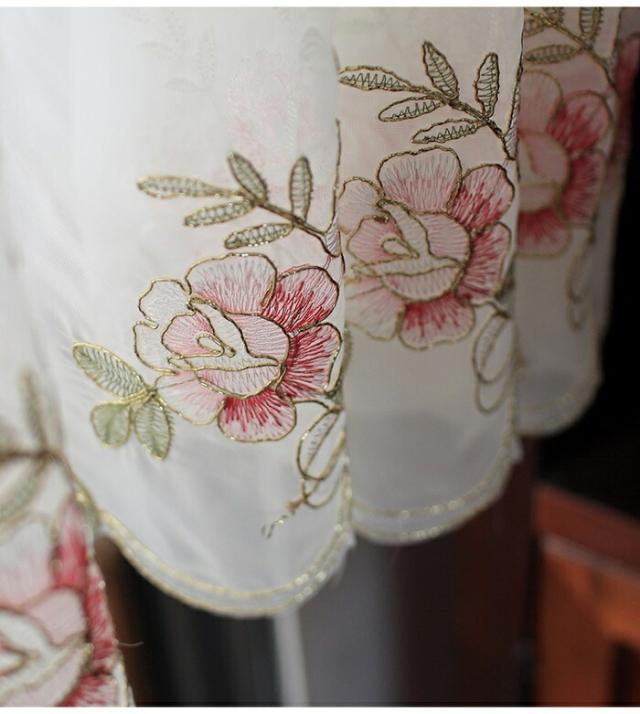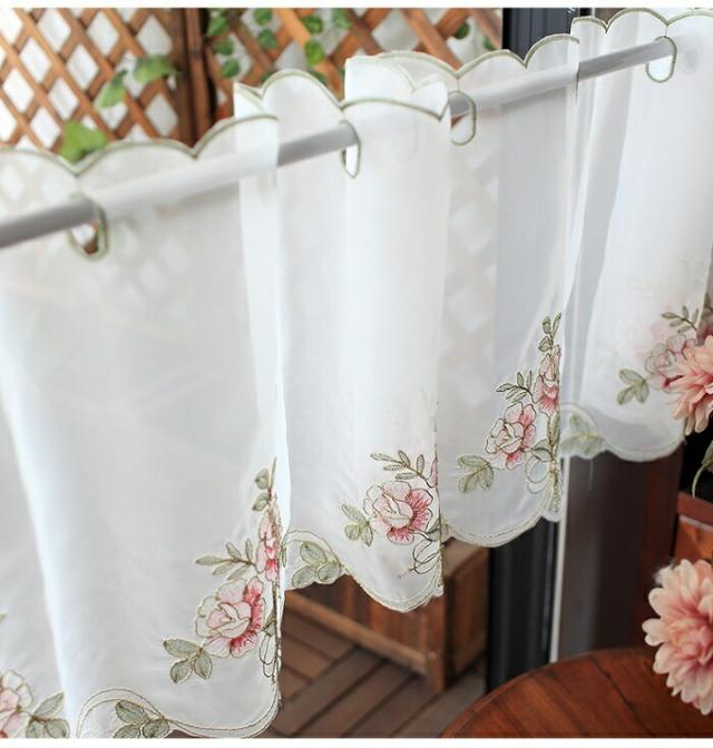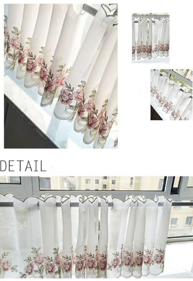 カフェカーテン 小窓用 小窓カーテン 送料無料 キッチンカーテン 刺繍 おしゃれ 小窓 カーテン ミドル カリスター サラサ 花 幅約110cm 丈約85cm