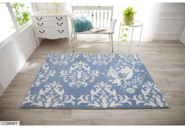ディズニー ラグ 90×130cm アリエル ダマスク柄 DISNEY 防ダニ 床暖房 ホットカーペット対応 キャラクター 北欧 かわいい 可愛い おしゃれ(代引不可)【送料無料】