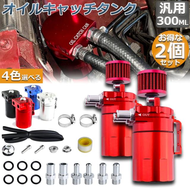オイルキャッチタンク 2点セット 汎用 アルミ製 オイルキャッチ バッフル付き ブリーザーフィルター ホース付属 フラットヘッド 円柱型 ホース ニップル付き 外径 10Φ 13Φ 16Φ ホース付属 300ml オートバイ 自動車 バイク