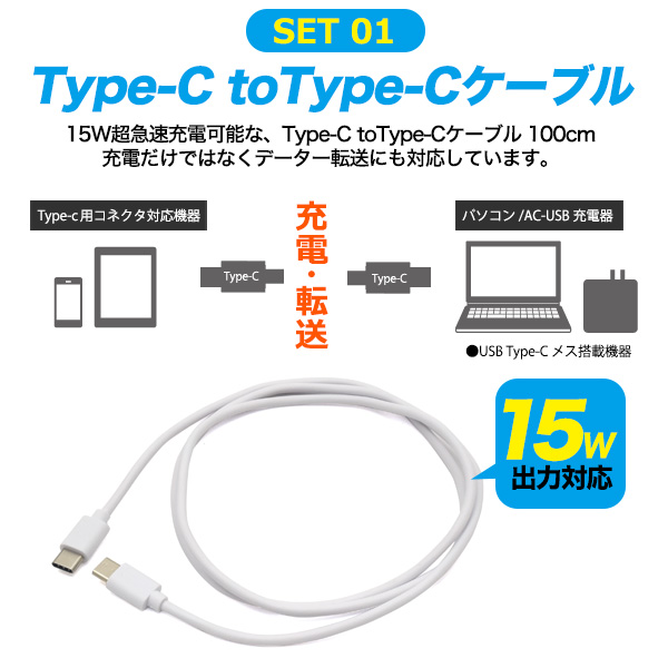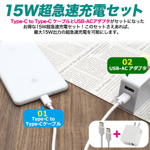スマホ充電器【ケーブル&アダプタセット】Type-C to Type-Cケーブル + USB-ACアダプタセット 100cm 超急速充電可能 スマートフォン 携帯電話 タブレット type-c to c タイプc typec Cタイプ コード 1m USB-C 送料無料 1000円ぽっきり ポイント消化 au docomo softbank