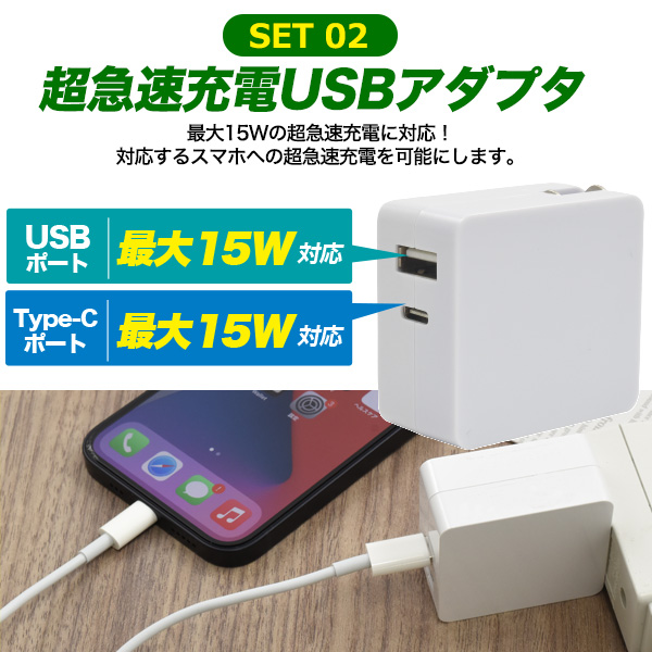 Type-C to Type-Cケーブル+USB-ACアダプタセット