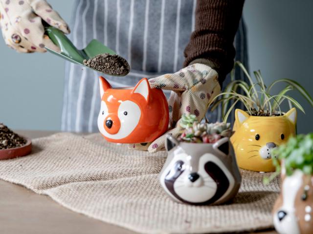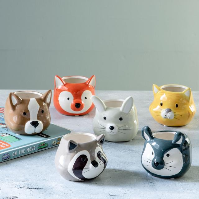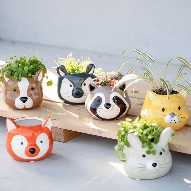 トラやウサギ、アライグマなどの動物の顔ポットです。サボテンや多肉植物、観葉植物、花の苗など、どんな種類の植物にも合います。お手入れ不要な造花やフェイクグリーンを入れて、気軽に使うのもオススメです。