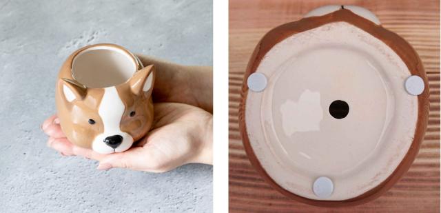 コロンとしたフォルムとサイズ感です。底には滑り止めが付いており、水はけ用の穴が開いています。