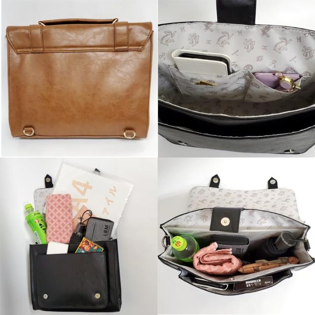 【ポケット】メイン収納内側オープンポケット×2、かぶせ部分オープンポケット×1 【素材】合皮